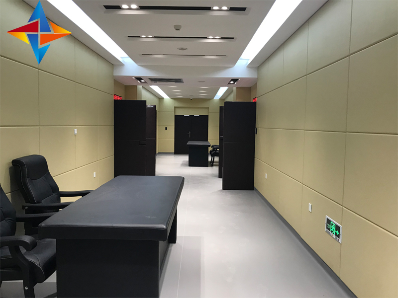 原材料:采用進(jìn)口的防火棉(國(guó)產(chǎn)棉密度低,防火達(dá)不到要求)等,并且用PU皮革《標(biāo)準(zhǔn)B1級(jí)阻燃》或吸音阻燃布藝做飾面,飾面顏色完全滿足辦案場(chǎng)所的光學(xué)效果。